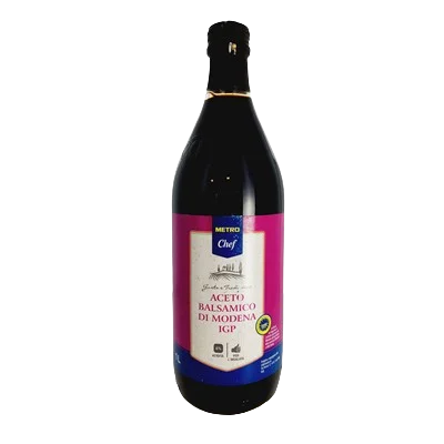 Otetul balsamic Modena Metro Chef este un produs clasic si versatil din bucataria italiana, cunoscut pentru aroma sa echilibrata, dulce-acrisoara si pentru textura limpede si fina. Realizat prin fermentarea si maturarea unei combinatie de vin si must de struguri, acest otet adauga profunzime si savoare preparatelor.