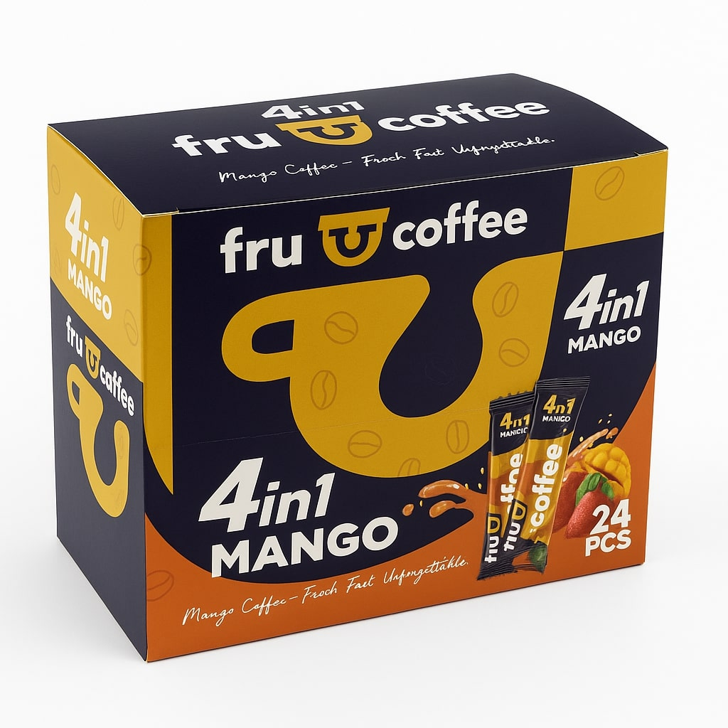 Descopera gustul unic al cafelei FruCoffee 4 in 1 cu mango, o bautura instant delicioasa ce imbina perfect cafeaua solubila, crema fina, zaharul si aroma fructata de mango. Bucura-te de o experienta tropicala, cremoasa si revigoranta, perfecta pentru orice moment al zilei.