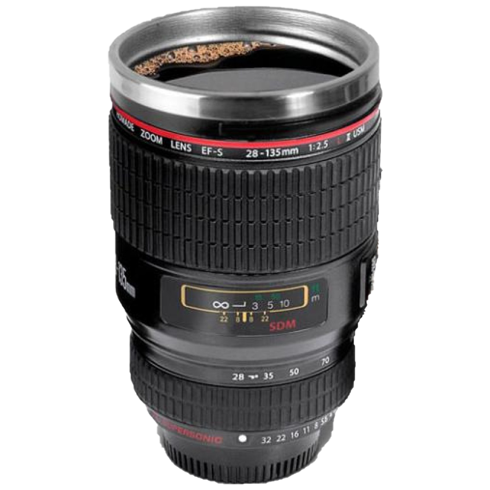 Cana in forma de obiectiv foto nu este doar pentru amatori. Obiectiv vorbind, cana te va fermeca imediat prin aspectul ei si cu o gama larga de aplicatii. Chiar si micile detalii ale lentilei reale au fost reproduse cu mare acuratete, datorita carora nu numai ca va va permite sa priviti bautura preferata dintr-o noua perspectiva si intr-o lumina buna. Poate, de asemenea, sa afiseze cu stil instrumentele de scris asezate in ea. Alte articole demne de o legare corespunzatoare, sau sa devina un loc de odihna pentru cenusa ta de tigara (daca mai ai curajul sa fumezi).