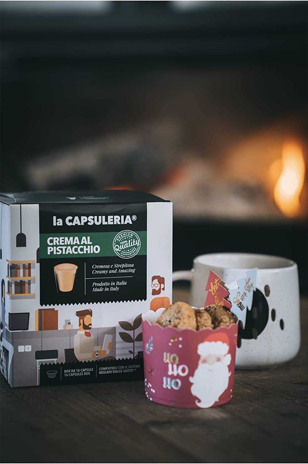 Un pachet de 16 capsule compatibile Nescafe® Dolce Gusto®, marca La Capsuleria®.