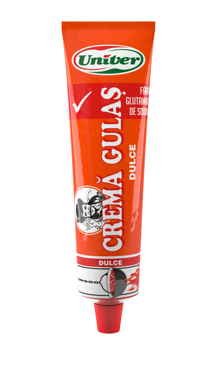 Crema gulas dulce Univer 160 g, aroma intensa de ardei dulce, ideala pentru gulas si preparate traditionale.