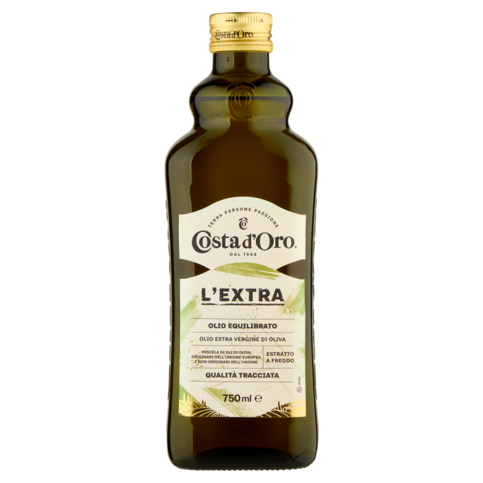 Ulei de masline extravirgin Costa d’Oro, presat la rece, cu gust fin si aroma fructata. Ideal pentru salate, paste si gatit. Ambalaj de 750 ml.