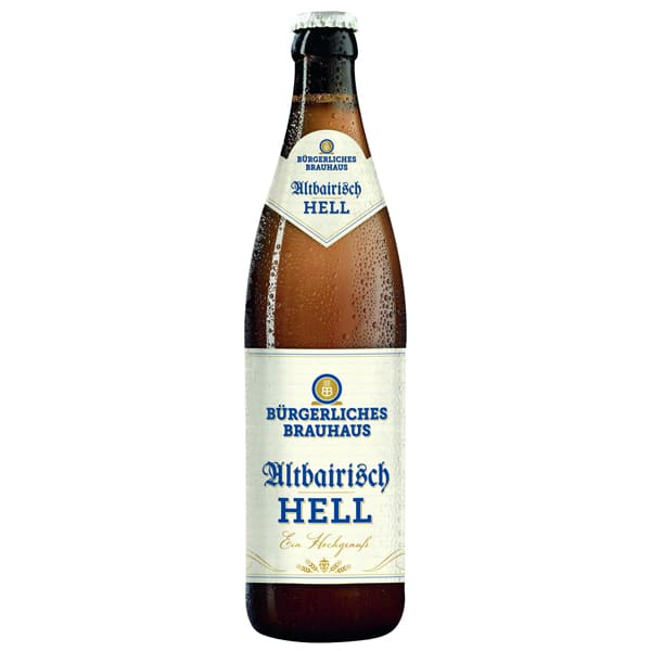 Altbairisch Hell 500ml este o bere blonda bavareza produsa dupa o reteta traditionala, fermentata la rece si maturata timp de patru saptamani la temperatura de 1°C. 100% din maltul de orz bavarez usor, de vara, confera acestei beri usoare frumoasa coroana din spuma alba, culoare galben aurie, precum un gust placut, moale si usor de malt.