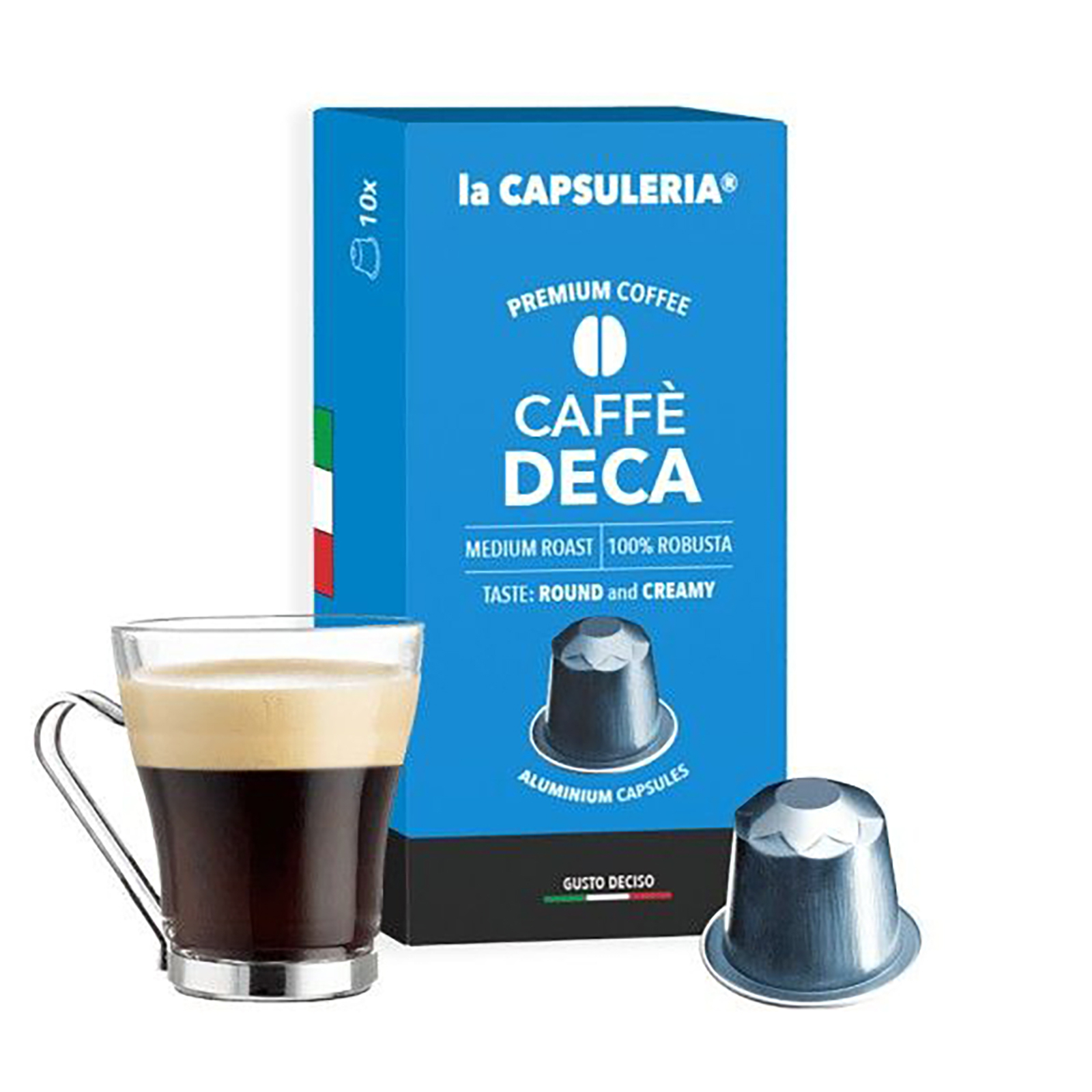 Cafea Deca, 10 capsule de aluminiu compatibile Nespresso, La Capsuleria