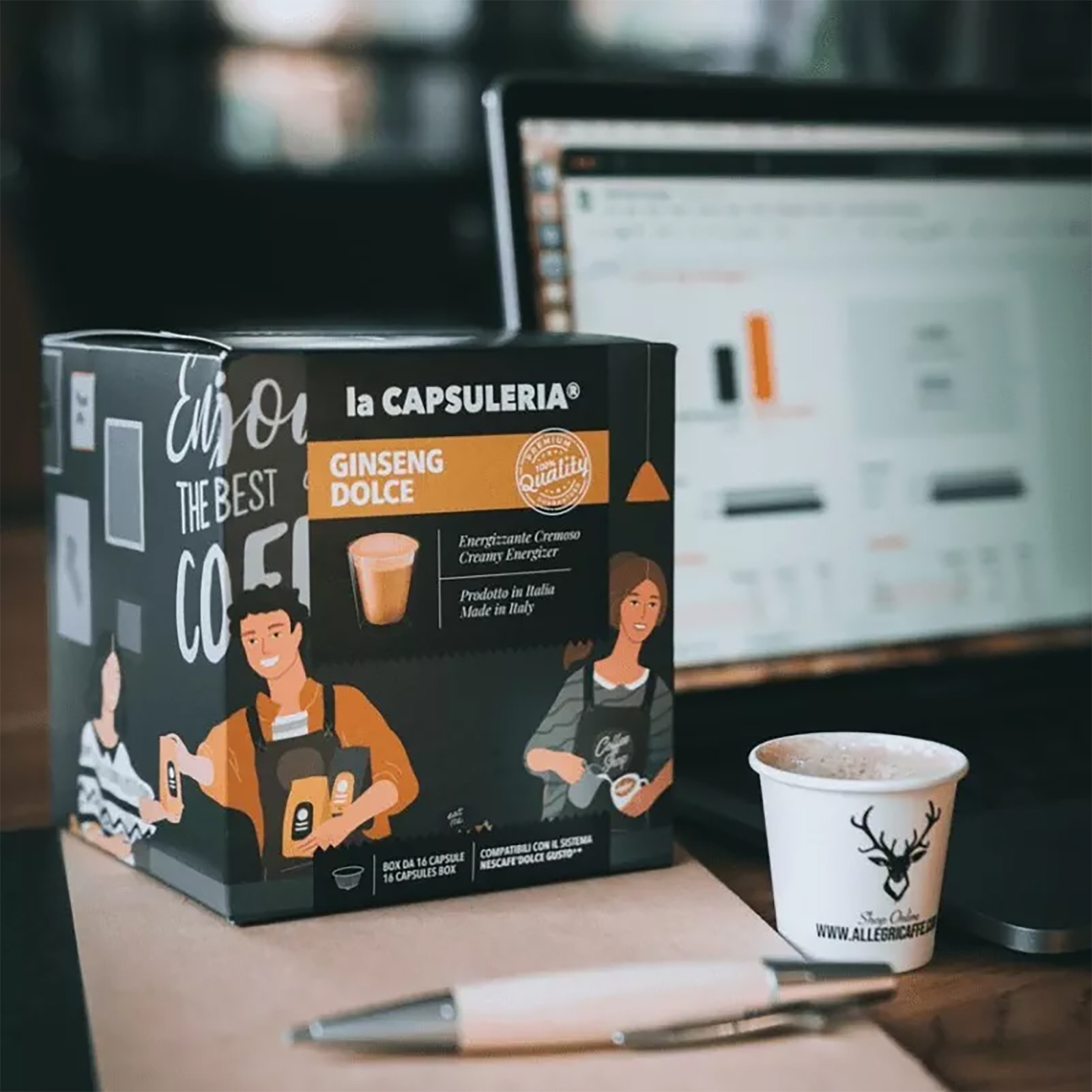 Ginseng dulce in capsule compatibile Dolce Gusto®, iti ofera posibilitatea de a avea toate beneficiile extraordinare ale radacinii ce vine din orient, intr-o singura capsula.