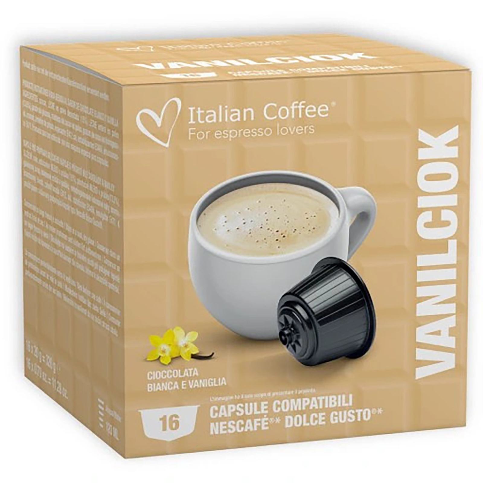 Un pachet de 16 capsule compatibile Nescafe® Dolce Gusto®, marca Italian Coffee®.