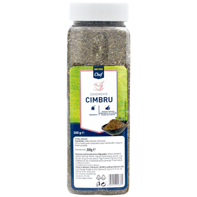 Cimbru METRO Chef 200 g, condiment aromatic ideal pentru ciorbe, fripturi si mancaruri traditionale.