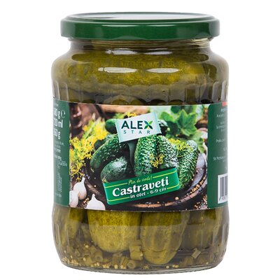 Castraveti in Otet ALEX STAR 680 g sunt castraveti proaspeti, cu dimensiunea 6-9 cm, conservati dupa reteta traditionala pentru a oferi un gust echilibrat, dulce-acrisor si o textura placut crocanta. Produs pasteurizat, potrivit pentru servire la orice masa, alaturi de preparate traditionale sau moderne.