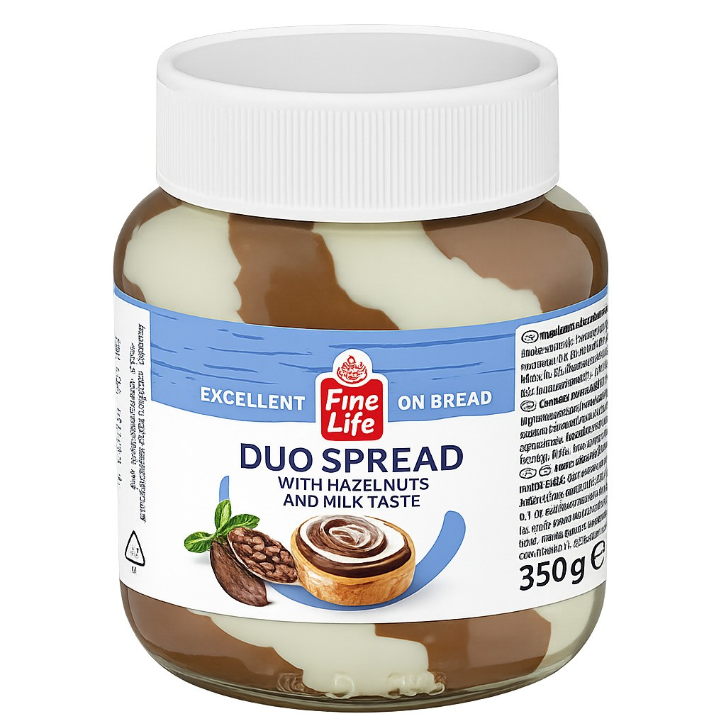 Crema Tartinabila Duo Fine Life este alegerea ideala pentru cei care doresc o crema dulce cu gust intens de cacao si alune, potrivita pentru utilizare zilnica, deserturi de casa si momente de rasfat.