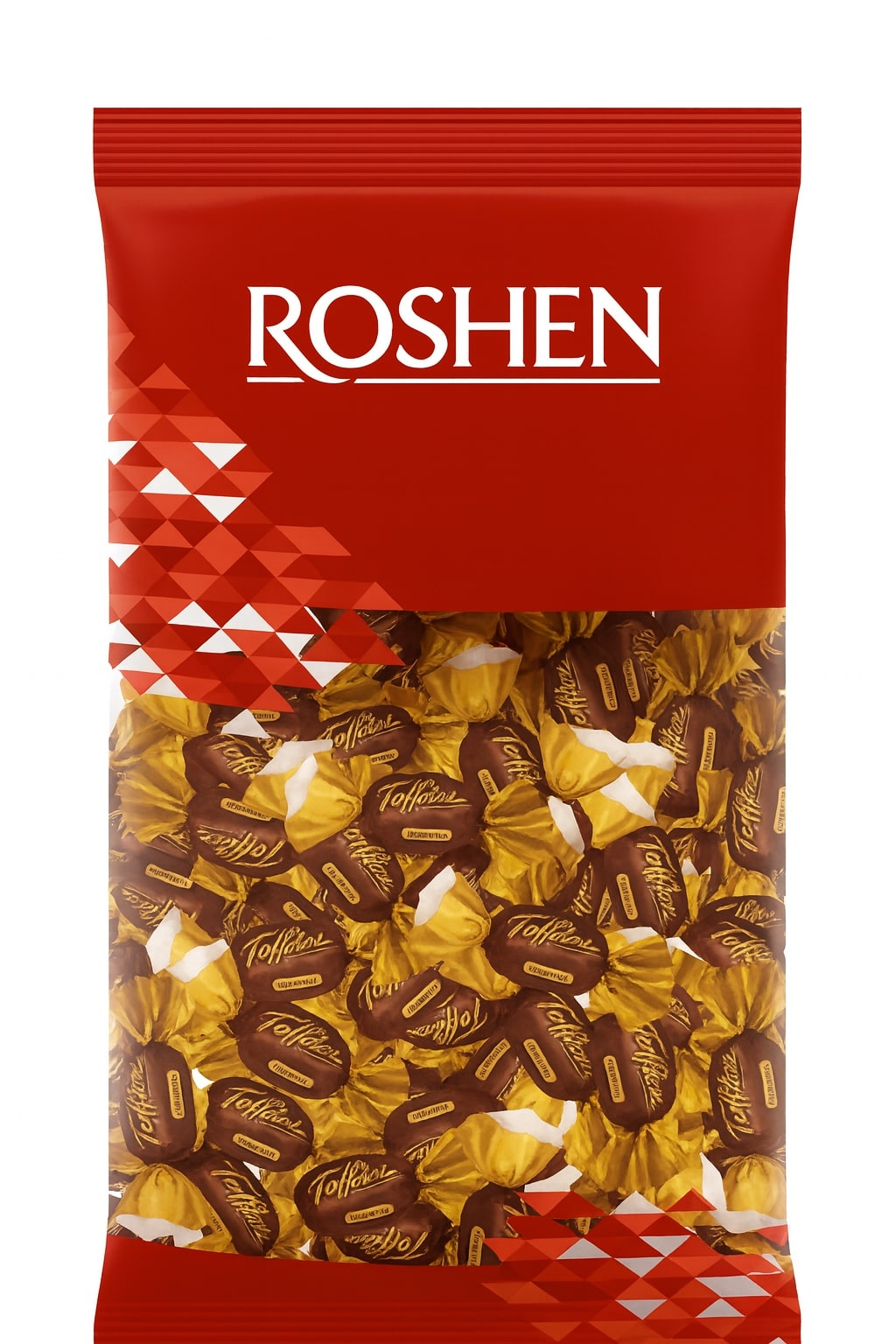 Roshen Toffelini 1 kg sunt bomboane caramelizate cu umplutura fina de ciocolata amaruie, ambalate individual pentru prospețime si confort. Exteriorul de caramel se imbina perfect cu interiorul cremos de cacao, oferind un gust intens si echilibrat. Sunt ideale pentru consum zilnic, pentru birou, pentru evenimente sau pentru a fi oferite cadou. Textura moale si aroma puternica de ciocolata fac din Toffelini un desert apreciat de toate varstele.