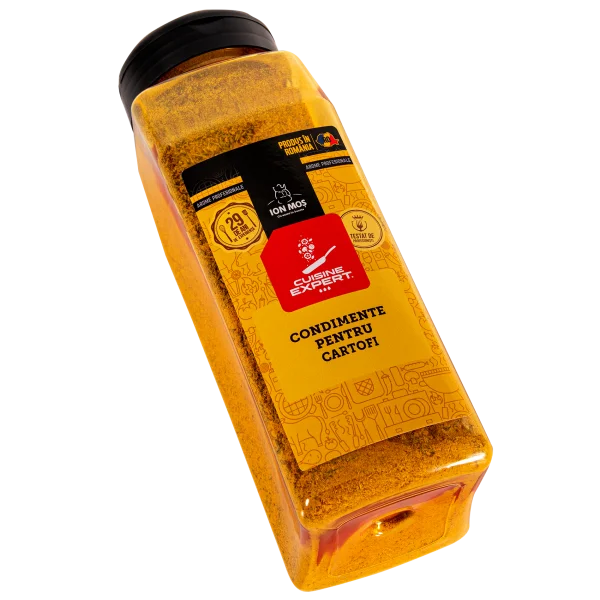 Mix-ul Profesional Cartofi Cuisine Expert se distribuie uniform pe suprafata cartofilor, ajutandu-i sa capete o aroma armonioasa si un gust echilibrat, fara a acoperi gustul natural al acestora. Ambalajul de 550 g este ideal pentru utilizare frecventa si pentru cantitati medii-mari de ingrediente.