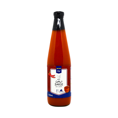 • Sos Hot Chilli Metro Chef, cu gust intens si picant, ideal pentru carne, burgeri si preparate asiatice. Ambalaj de 725 ml pentru utilizare frecventa.