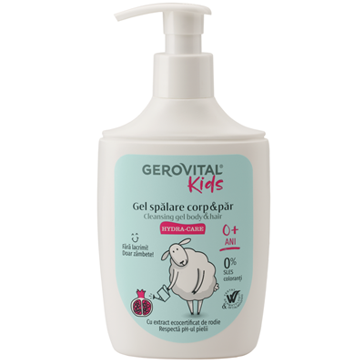 Gerovital Kids Gel Spalare Corp & Par Hydra-Care este o formula dezvoltata special pentru pielea bebelusilor si copiilor mici, nu irita ochii si respecta pH-ul pielii. Surfactantii blanzi, de origine naturala, spala delicat si eficient. Pentru hidratarea pielii fine a copilasilor s-au asociat Glicerina, D-Panthenolul si extractul ecocertificat de Rodie. Spuma densa, cremoasa, si notele de parfumare reconfortante asigura o baita cu buna dispozitie.