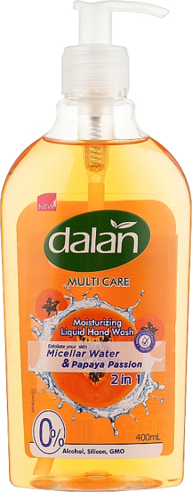Sapun lichid Dalan Therapy cu Apa Micelara si Papaya 400 ml, curata delicat si lasa mainile fine si proaspete. Ideal pentru utilizare zilnica.