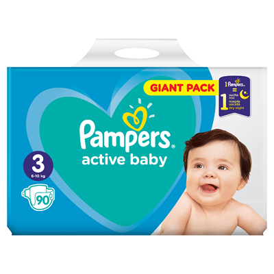 • Scutece Pampers Active Baby Marimea 3 pentru 4-9 kg, pachet cu 90 bucati, absorbtie eficienta si confort pentru bebelusi.
